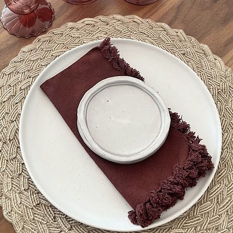 I set the table (casually) every night. It’s both a weeknight ritual and a signal to anyone I’m dining with that I’m absolutely delighted to be sharing a meal with them. Setting the table is also a daily source of low pressure creativity as I select the perfect glassware and linens that pair best with the occasion. Plus, there’s nothing quite like throwing some linens down to feel like you have your shit together.